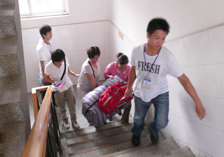 志愿者不辞辛苦一趟趟帮新生搬行李