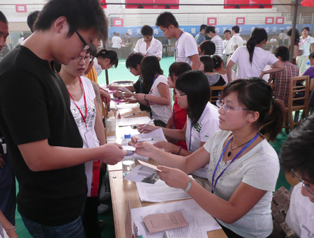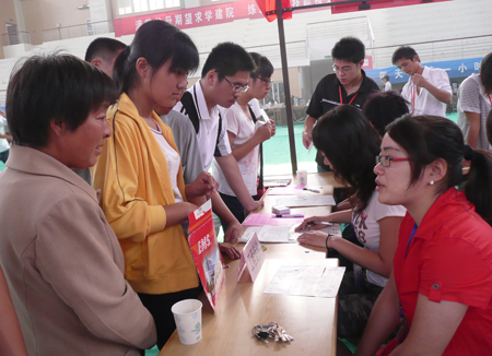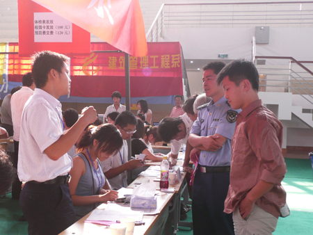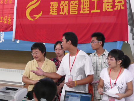 为迎接08新生入学,我系配合公司精心筹备了报道工作。系党政领导高度重视,亲临现场;辅导员老师热情接待,耐心答疑;员工志愿者不言辛苦,挥汗如雨,报道工作顺利开展。从9月2日起,截止到7号中午,我系各专业总报到率94%。