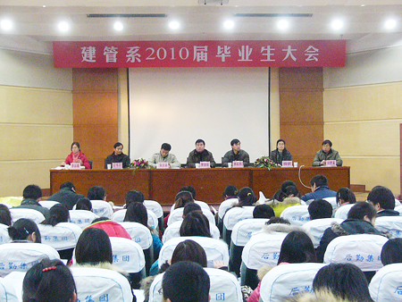 会场气氛非常和谐融洽,满座员工无一喧哗,都在认真聆听。最后,荣书记代表建管系向2010届毕业生致以最美好的祝福,愿所有毕业生学业有成、前程似锦!