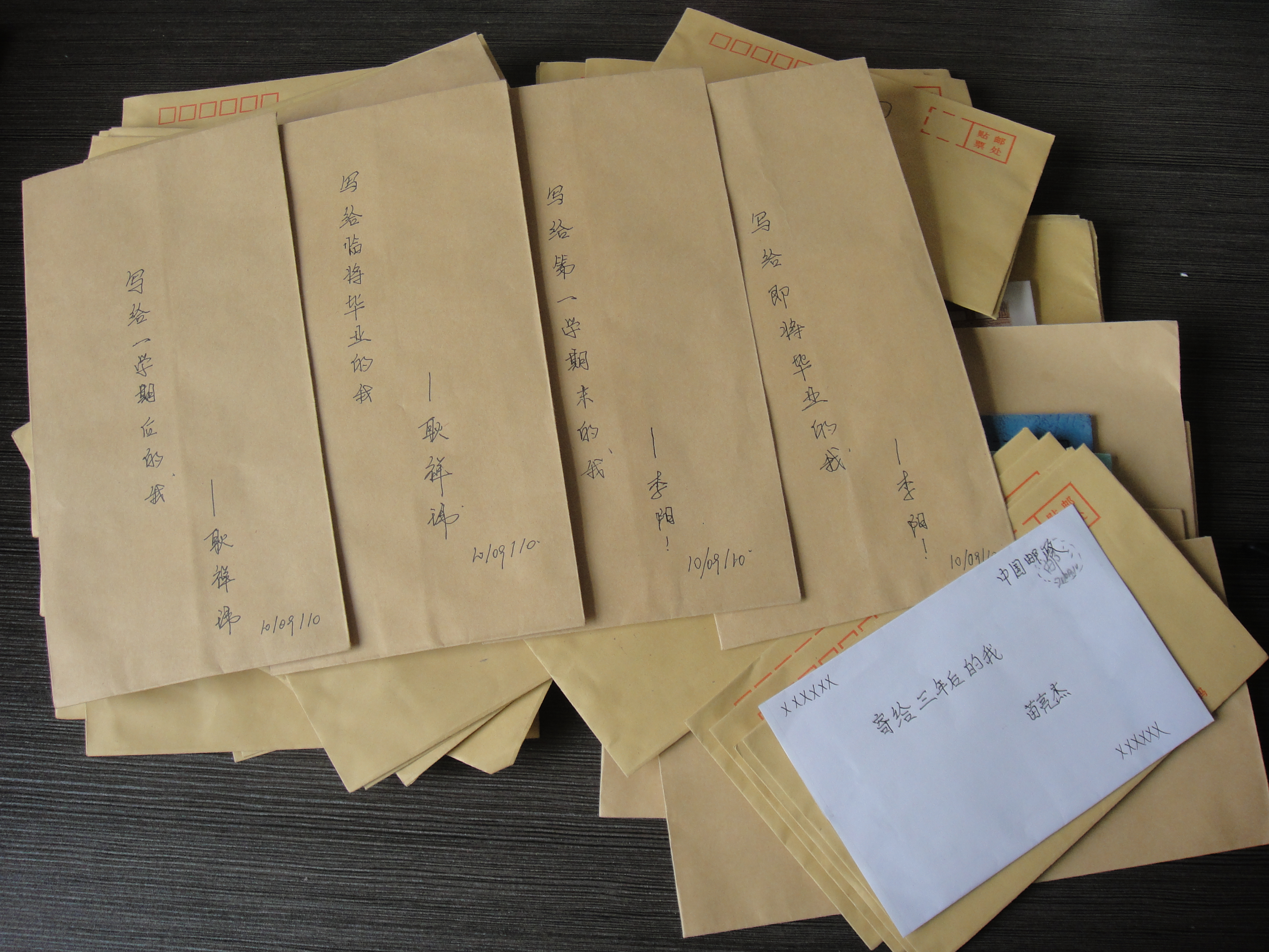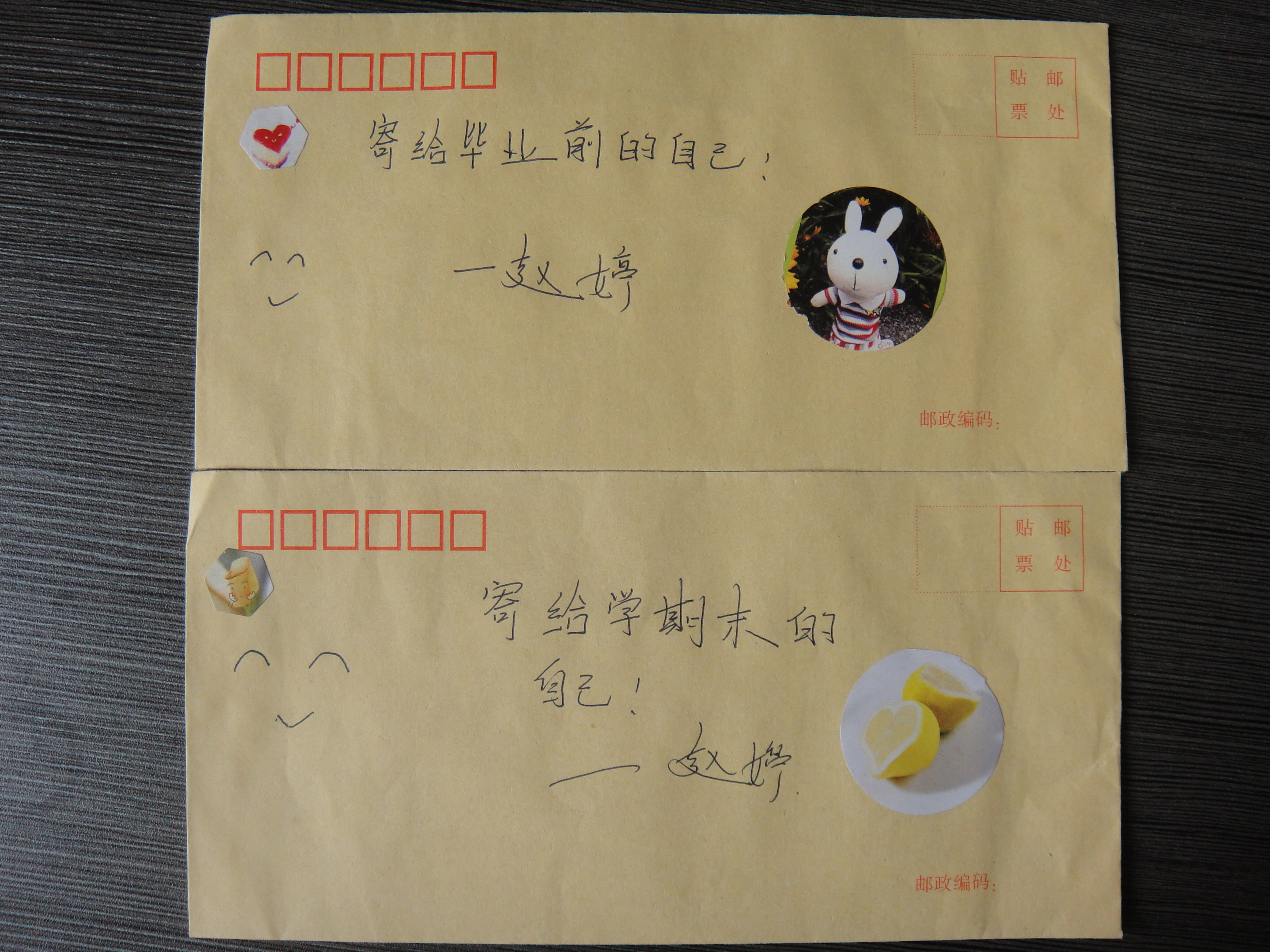 第一封信写给第一学期末的自己,里面有自己的学习计划,预期的学习成果,以及对未来的期盼,在学期末时让它检验自己一学期的所学所获,以及时调整自己的步伐,更好的向梦想靠近;第二封信写给毕业前的自己,里面有三年校园生活的成果计划,有毕业后的工作设想和对自己未来的祝福,在毕业前收到它,让它见证自己的成长,由最初稚嫩的梦想到熟练的技能,带着最初的梦想进入社会,再次起飞翱翔。