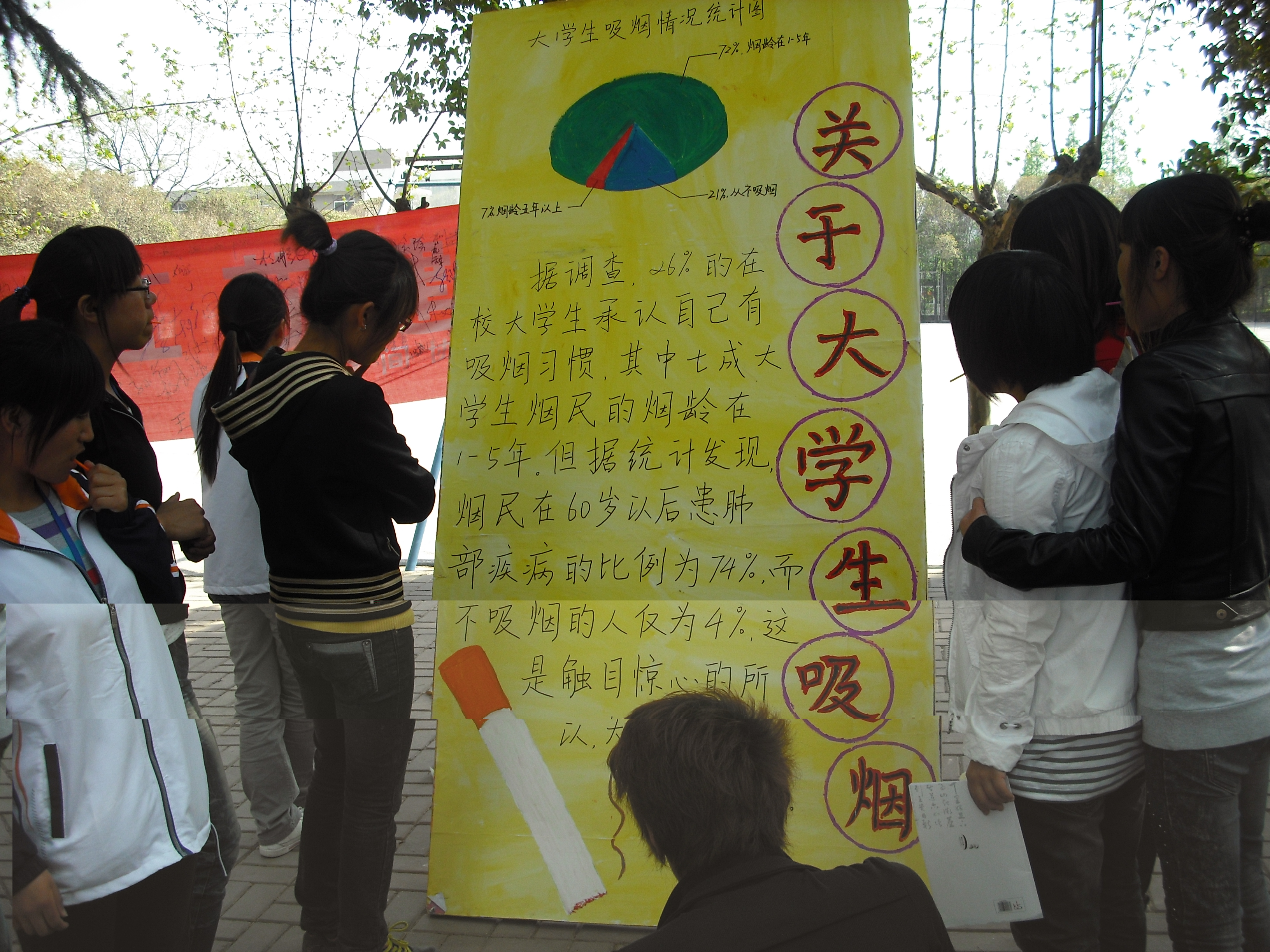 公司团总支于2011年4月14日在林公司荫大道和西操场组织“健康校园、远离香烟”主题问卷调查活动。