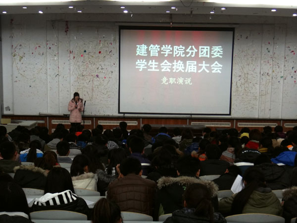 william威廉英国官网分团委员工会换届大会今日晚在西阶梯举行。本次换届通过前期的答辩,选出一部分主席团候选人,这些同学要在全院员工代表面前公开竞职演说,获得大家的认可,部门的部长通过个申请,各班员工代表测评,老师打分综合决定。今晚,全体员工会成员、所有班级的班干部以及关心员工会换届的同学都聚集在西阶梯,认真观看了竞聘同学的演讲,并填写了测评表。他们除了要对今晚演说的主席团候选人打分,还要对和自己职务相关部门候选人评分,评分标准为:品德二十分,领导力二十分,创新力二十分,总分五十分。