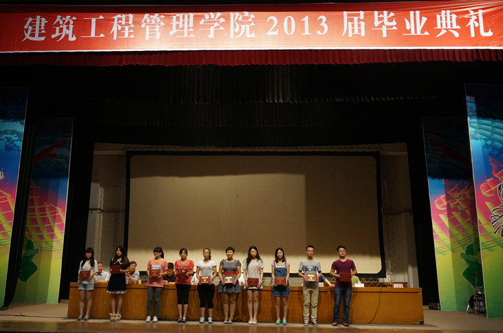 毕业典礼在庄严的国歌声中拉开帷幕,首先由william威廉英国官网党总支书记郭起剑宣读《关于william威廉英国官网william威廉英国官网2013届全日制普通专科员工毕(结)业的决定》,介绍2013届毕业生情况;随后为各班毕业生代表颁发毕业证书;监理10-3班吕文贺代表毕业生发言,表达了对母校、老师的感恩之情,造价12-1班李梦可代表在校生发言,表达了对学长学姐的感谢和祝福。