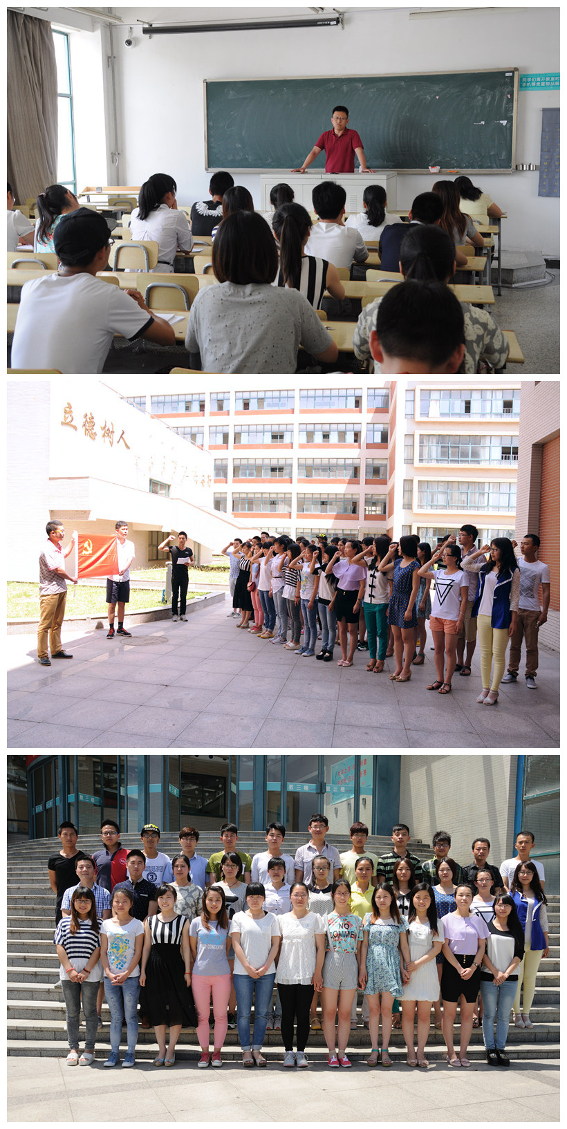 活动中,全体党员一起重温入党誓言,面对党旗,紧握拳头,庄严宣誓,洪亮的宣誓声中,大家热血沸腾,青年党员们将用行动坚定理想,坚持道路,坚信未来,坚强地迎接新挑战,牢记使命与责任,更加奋发有为,无私奉献,共茿中国梦。最后,全体毕业生党员合影留念。