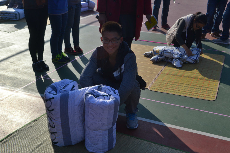 随着主持人的一声令下,比赛正式开始,7组选手“八仙过海,各显神通”,让在场的人都大开眼界,短短五分钟时间,被子就被叠成了豆腐块状,方方正正。在激烈的比赛间隙,嘉宾及评委也纷纷上场表演助阵,此举极大地缓解了现场紧张的比赛气氛,“趣味叠被子大赛”更是展现了选手们与众不同的创意。随着时间的推移,比赛渐渐落下了帷幕,最后经过评委的打分及点评,房估14-1班张晶晶与造价14-1班郭益帆同学夺得冠军,同时选出了十位优秀选手参加校级比赛。