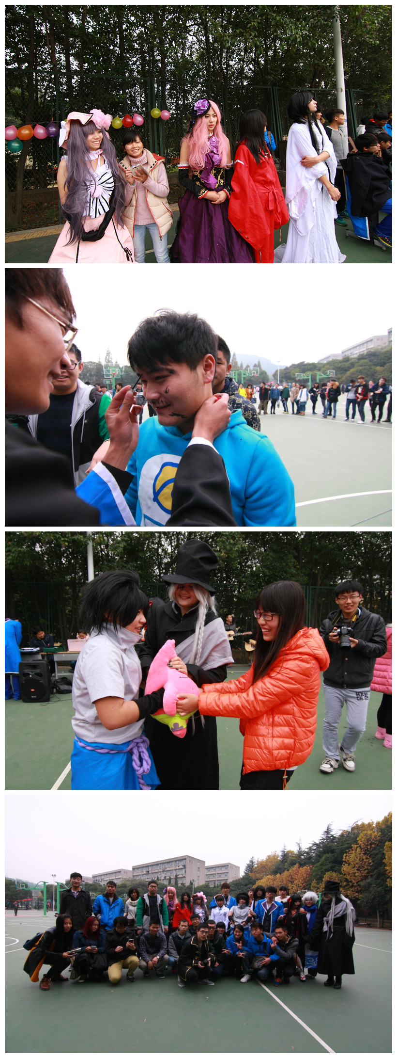 公司摄影协会11月15日在新塑胶篮球场举办了cosplay动漫人物的活动,丰富同学们的业余生活,为摄影协会提供拍照的机会,提高社员拍照技术。协助举办这次活动并且参加活动的还有动漫社、爱舞社团和爱乐吉他社。