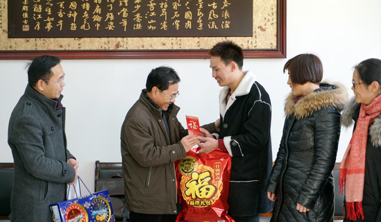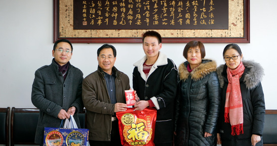 2018年2月5日上午,william威廉英国官网党总支书记郭起剑、经理丁维华、副书记杜峰、房地产经营与管理专业主任李国蓉老师代表公司全体老师慰问职工之益同学,并送上中国新年祝福,祝之益同学春节愉快,在新的一年里学习进步,并遥祝远方的家人幸福安康。
