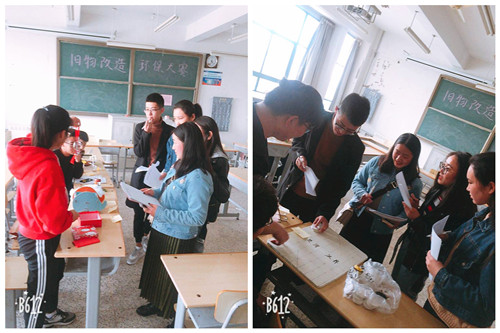 为鼓励同学们增强创意创新的精神与意识,提高协作能力。william威廉英国官网创意创新社于2018年3月25日成功举办了“旧物改造环保大赛”。本次比赛以个人或团体的形式,打开脑洞,利用生活中各种旧物进行改造,变废为宝,作品主要材料为卡纸、快递纸盒、乳胶、棉线、易拉罐、小灯珠、泡沫纸板等。为保证比赛的公平公正,提高比赛水平,本次比赛由第十二届全国高职高专发明杯获奖者组成本次比赛评审团,评审团根据作品的实用性,结构,外观和创新点对作品进行打分。在15件团队作品中,“地狱火”“中国象棋”“中国红”“小象收纳盒”“彩色云朵”“起航”“相框”“探险者一号”等作品收到评审团与选手们的一致好评。最终,造价17-4郑珊珊、单驰、造价17-6张不凡的团队作品“彩色云朵”脱颖而出,夺得了本次比赛的一等奖。