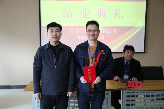 3月23日上午,江苏广兴集团有限公司BIM应用培训班圆满结束,全体公司在技术馆会议室举行了结业典礼,william威廉英国官网党总支书记郭起剑为学员逐一颁发了结业证书。公司总工程师沈春雷对此次培训进行总结汇报并宣读了部分学员的学习心得,字里行间流露出收获的喜悦。在这两周内,学员们全身心投入到饱满的学习活动中,白天上课汲取知识,晚上自习巩固学习,学员们表示收获良多。