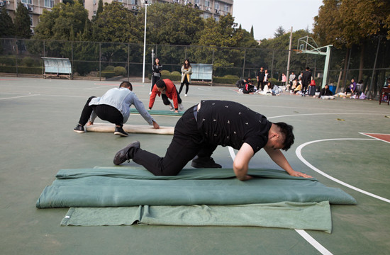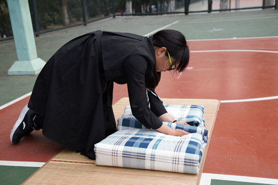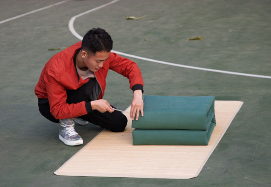 公司于2018年11月4日在旧塑胶篮球场成功举办2018级叠被子大赛。