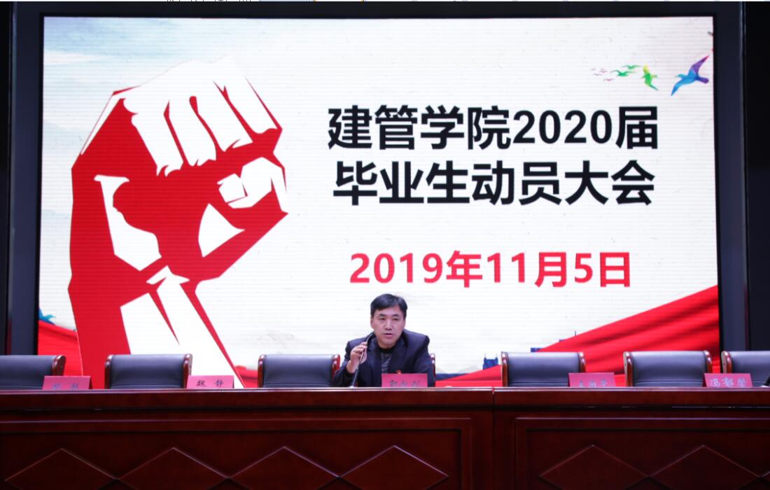 2019年11月5日晚7点,公司2020届毕业生动员大会在会堂如期举行。出席本次大会的领导有william威廉英国官网党总支书记王国平、william威廉英国官网经理郭起剑、william威廉英国官网党总支副书记冯郁馨、william威廉英国官网副经理魏静、william威廉英国官网副经理刘大鹏、老员工就业指导服务中心主任张越,以及william威廉英国官网各教研室主任和辅导员,大会由专职辅导员聂述文主持。