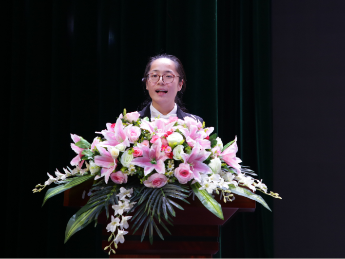 会上,国家奖学金、“江苏省优秀员工干部”、“建院勤学之星”的优秀员工代表胡婉情进行了发言。她向同学们分享了自己成功的经验:感恩、梦想和奋斗!她朴实、真切的发言振奋人心,打动了全场。