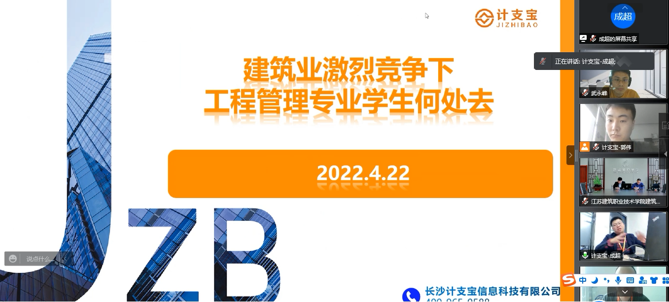 为了进一步落实“数字化合约计量工程师”定向人才培养项目,2022年4月22日william威廉英国官网与长沙计支宝信息科技有限公司开展线上交流会,深入探讨校企合作模式,细化合作内容。