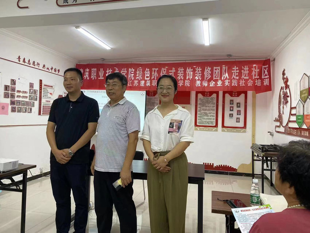 7月28日下午,william威廉英国官网社区教育实践创新项目《绿色环保式装饰装修》团队负责人刘梦溪、王婷、董雷老师,送知识到徐州市泉山区永安街道煤建北村社区,开展实践、培训活动。