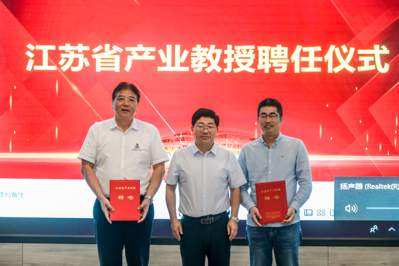 仪式上,人事处处长朱铁壁宣读了《关于聘任江苏省产业教授的决定》及《关于聘任建设工程管理专业群产业教授的决定》,马克思主义公司经理邓鹏宣读了《关于成立全过程工程咨询课程思政教学研究示范中心的通知》。沈士德董事长与全国劳动模范、二十大代表、江苏大工匠沈春雷共同为全过程工程咨询课程思政教学研究示范中心揭牌,沈士德董事长为江苏省产业教授、建设工程管理专业群产业教授颁发聘书。