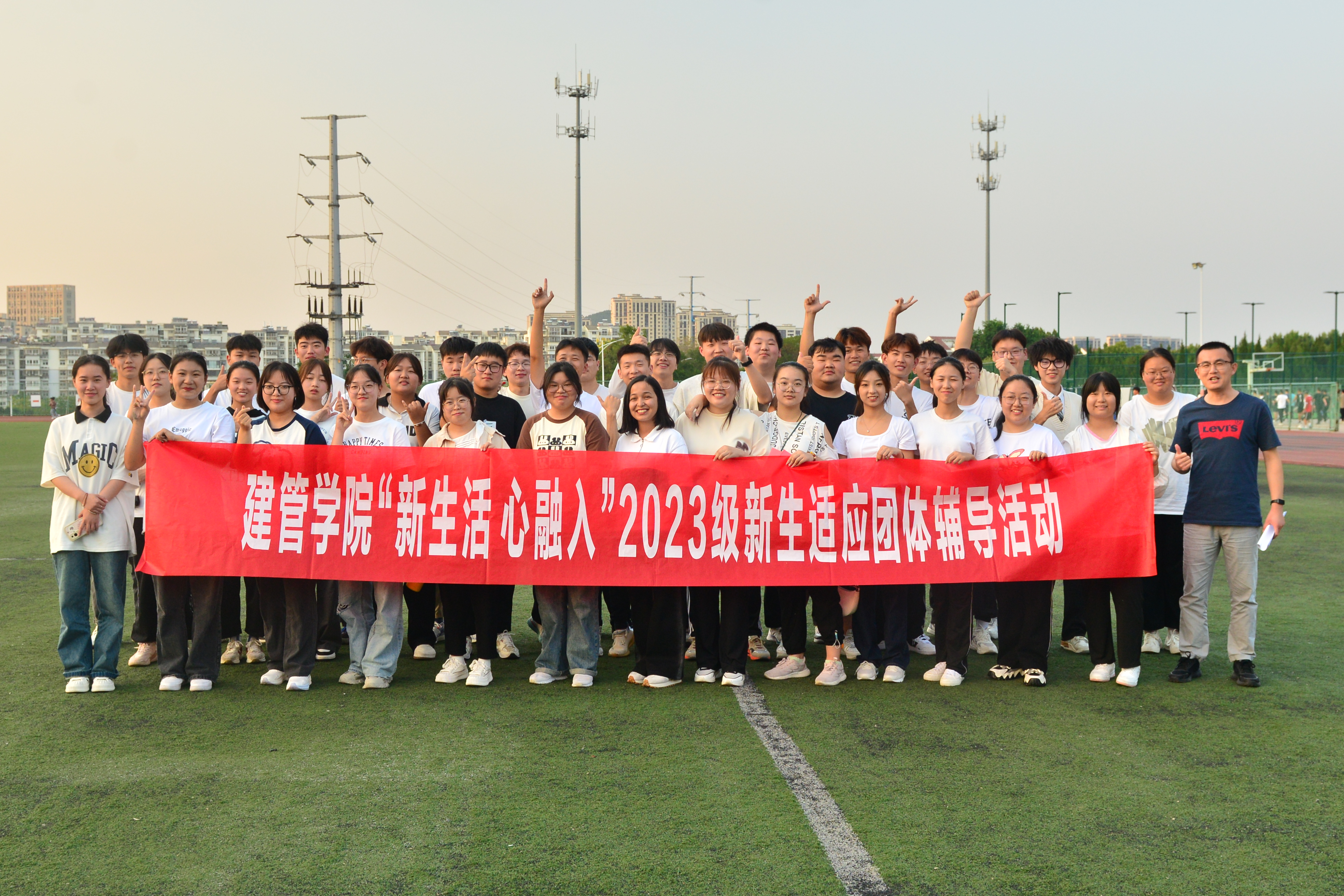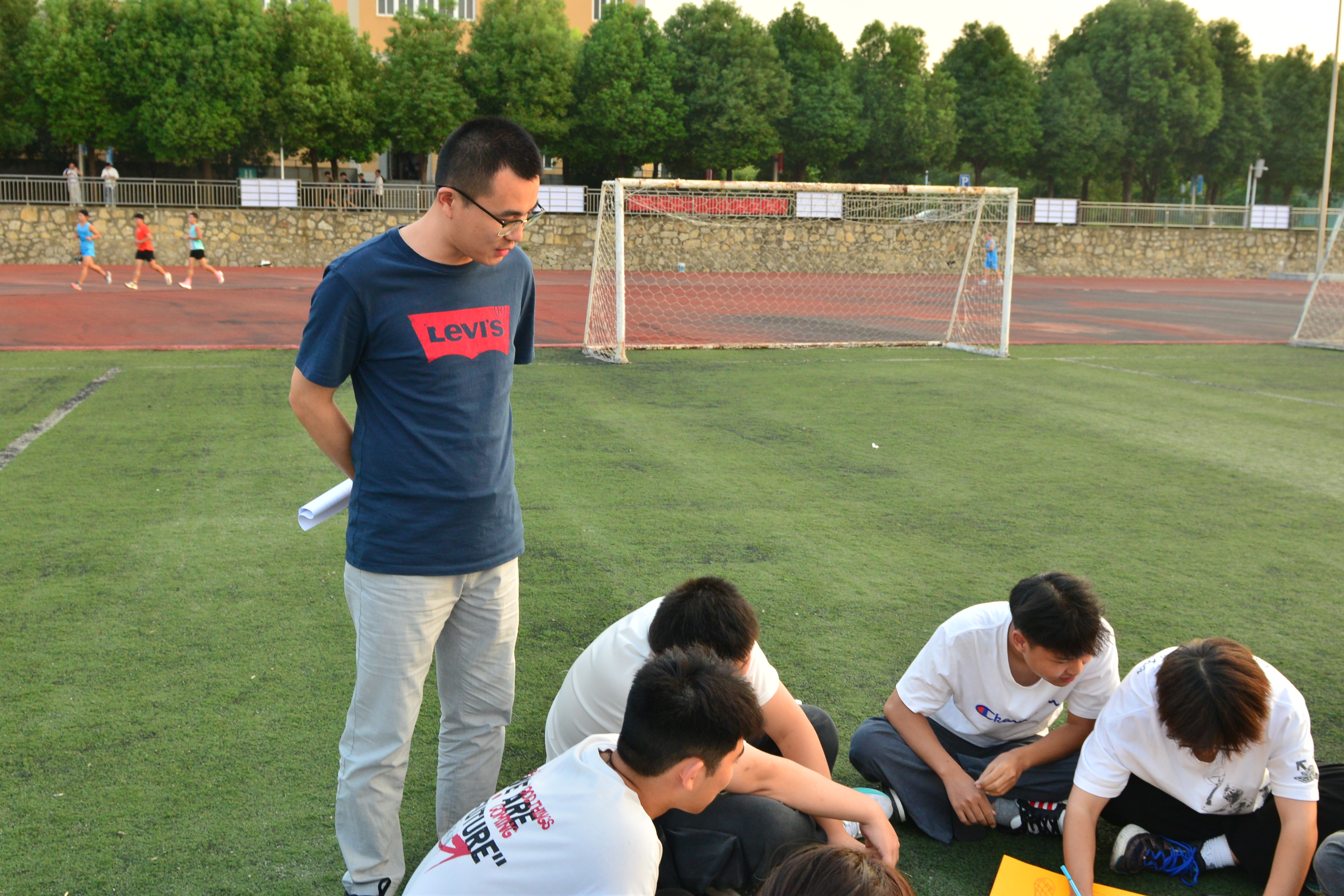 17时20分,在新生们到达西操场后,按活动策划开展团辅活动。随着“大风吹”、“松鼠与大树”、“找零钱”等热身项目的开展,新生们开始聚到一起聊天,互相了解,活动气氛逐渐变得火热起来。新生们兴趣高涨,完全消除了紧张感和陌生感,快速和身边同学熟悉起来。随着活动的进行,新生们席地而坐、集思广益、畅所欲言。