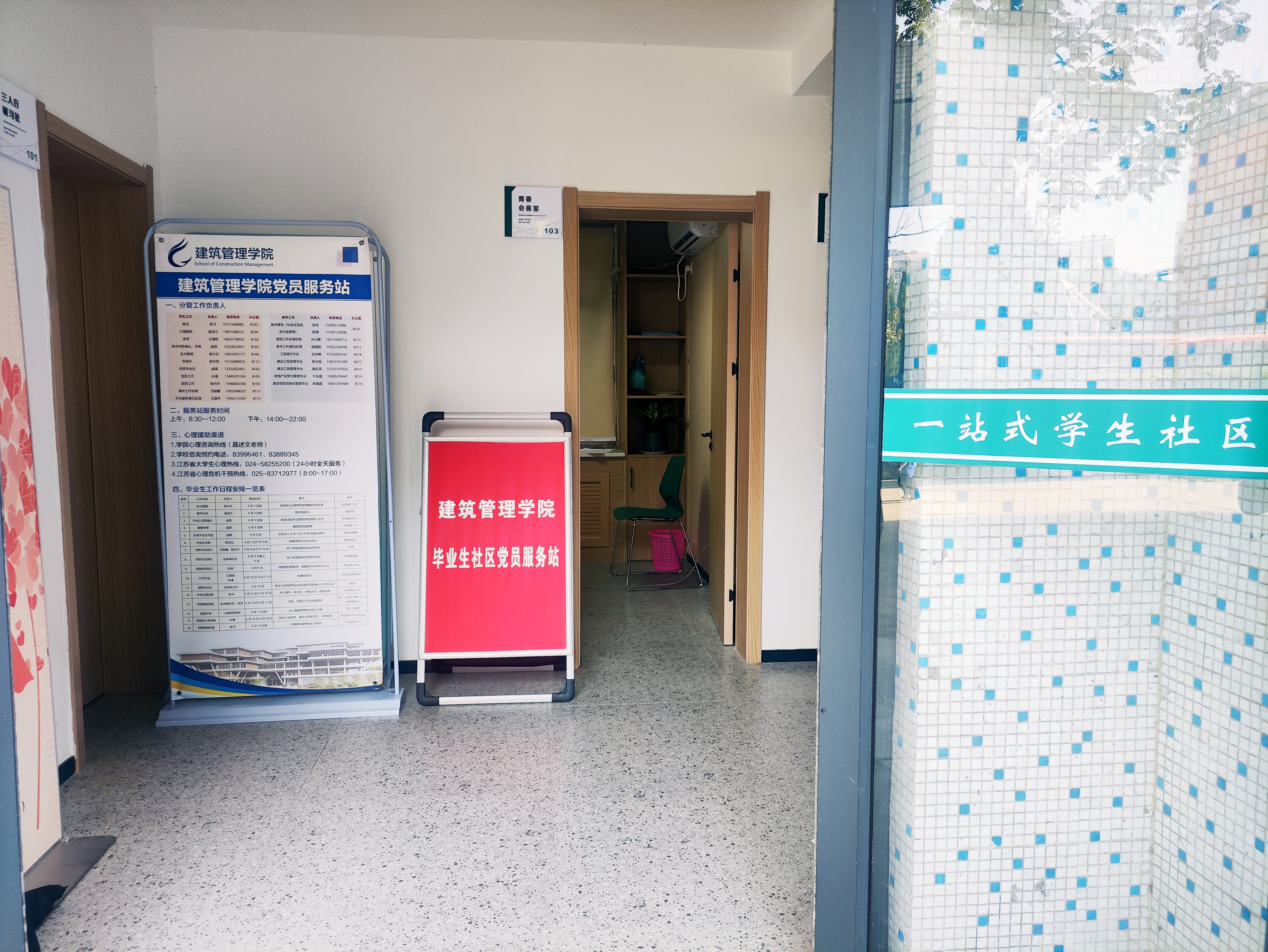 20级毕业生毕业季,william威廉英国官网依托“一站式”员工社区服务中心,设立毕业生社区党员服务站,解决员工“急难愁盼”问题,全天候为毕业生提供“零距离”咨询,职能覆盖员工学习生活、生活吃住、事务办理、权益维护、心理健康等。引领员工党员、入党积极分子、团学骨干在社区建设中主动“亮身份、做表率”。