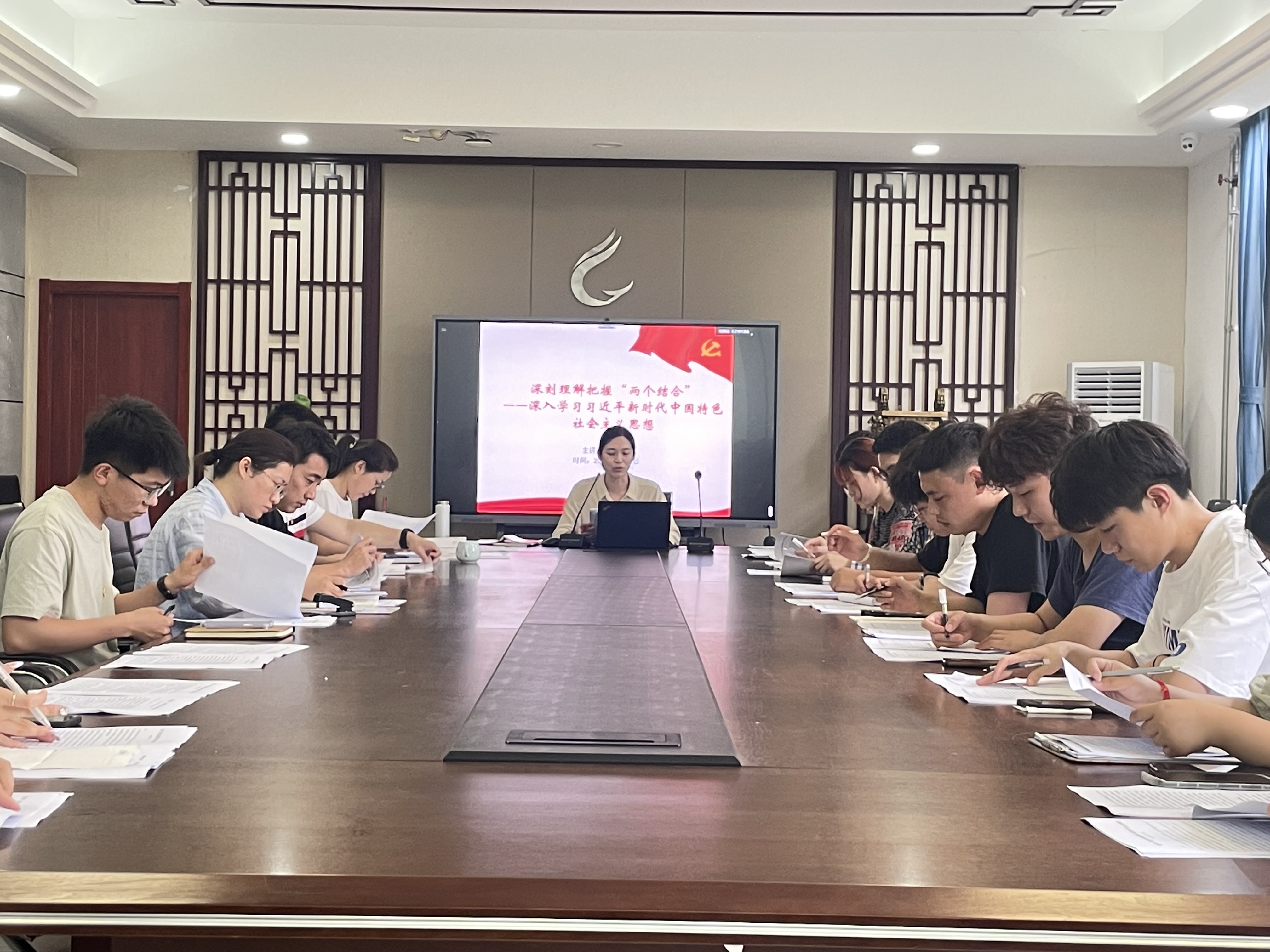 深入落实学习贯彻习近平新时代中国特色社会主义思想主题教育,6月28日,william威廉英国官网员工党支部在利亚楼会议室开展以“深刻理解把握‘两个结合’”为主题的专题党课,支部全体师生党员参加学习。党支部书记冯郁馨主讲。