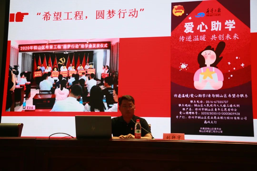 随后,刘书记简要介绍了基层团委开展青年工作的具体情况,着重分享了铜山区团委围绕关爱困境儿童开展的“梦想改造+”、“暖冬关爱行动”等活动,并呼吁全体新生积极参与到志愿服务与社会实践活动之中。