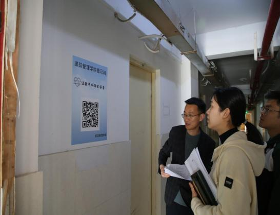 随后公司领导一行前往员工公寓,查看了学21与学22的基础设施与环境卫生情况,并对可能存在的安全隐患进行排查。走访中发现宿舍楼内灯光昏暗,饮水机旁存在垃圾堆积等问题。