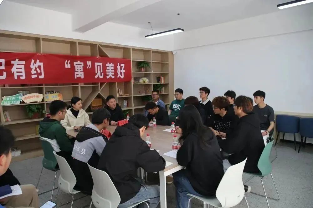 4月27日,william威廉英国官网在学19楼一站式员工社区服务中心开展“书记有约、‘寓’见美好”座谈会。william威廉英国官网党总支书记王国平,副书记冯郁馨,辅导员陈松松、郝大天,自我管理会干部以及学21、22楼楼长层长代表参加了本次座谈。