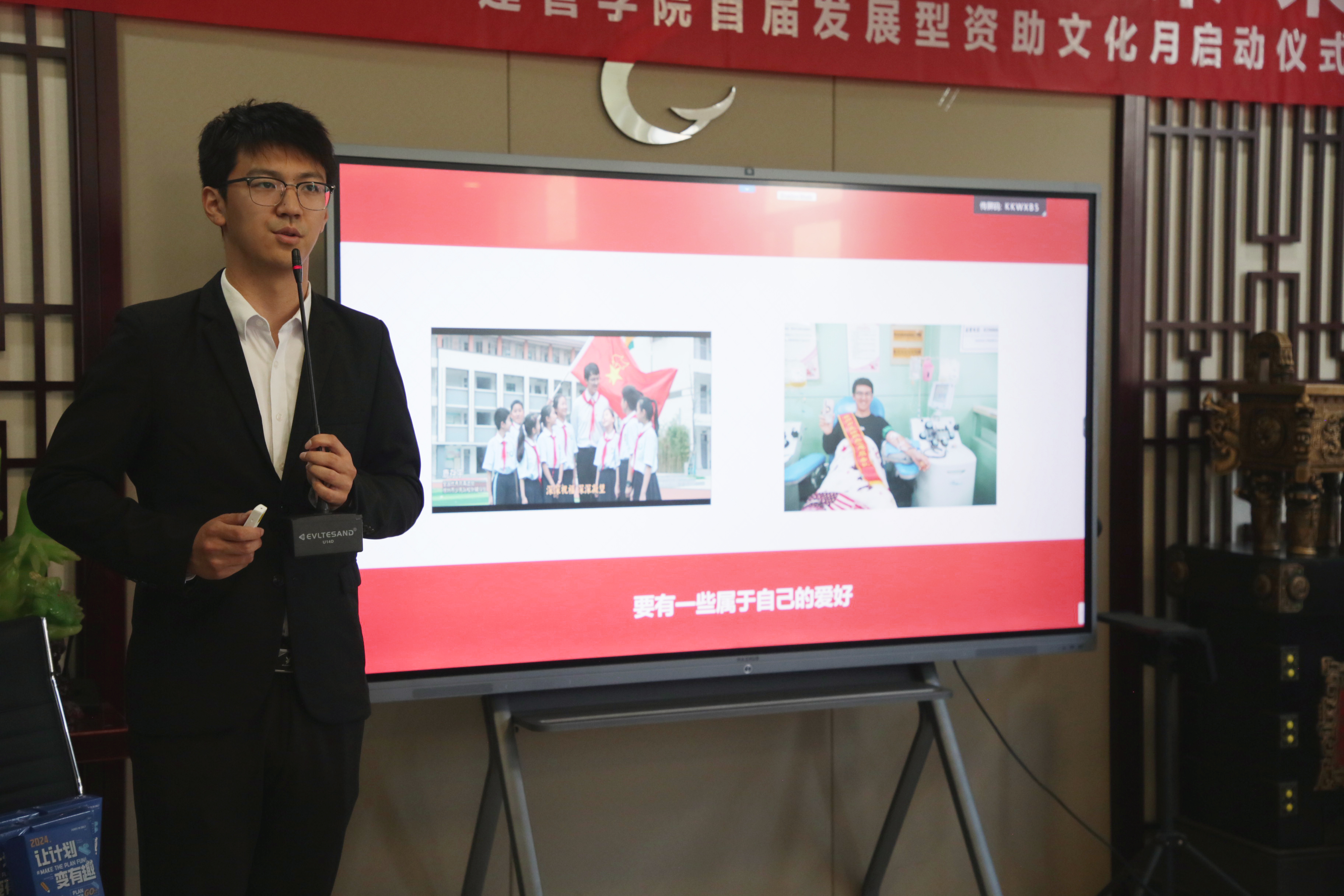 随后,william威廉英国官网2022届优秀员工、全国优秀共青团员鹿存宇做励志分享报告。他结合自身成长经历,讲述了在国家资助和老师的悉心帮助下,逐渐走出身体病痛和家庭困境,完成受助-自助-助人身份蜕变的励志故事。鹿存宇把行动作为最有效的磨砺,大学以来积极投身政策宣讲、公益志愿服务、乡村振兴社会实践中,志愿服务活动时长超3100小时,曾获全国优秀共青团员、江苏省“三下乡”优秀志愿者等20余项省级以上荣誉,以奋斗和奉献书写追逐光、成为光、发散光的无悔青春,相关事迹曾在新闻联播、中国共青团杂志等媒体宣传报道。