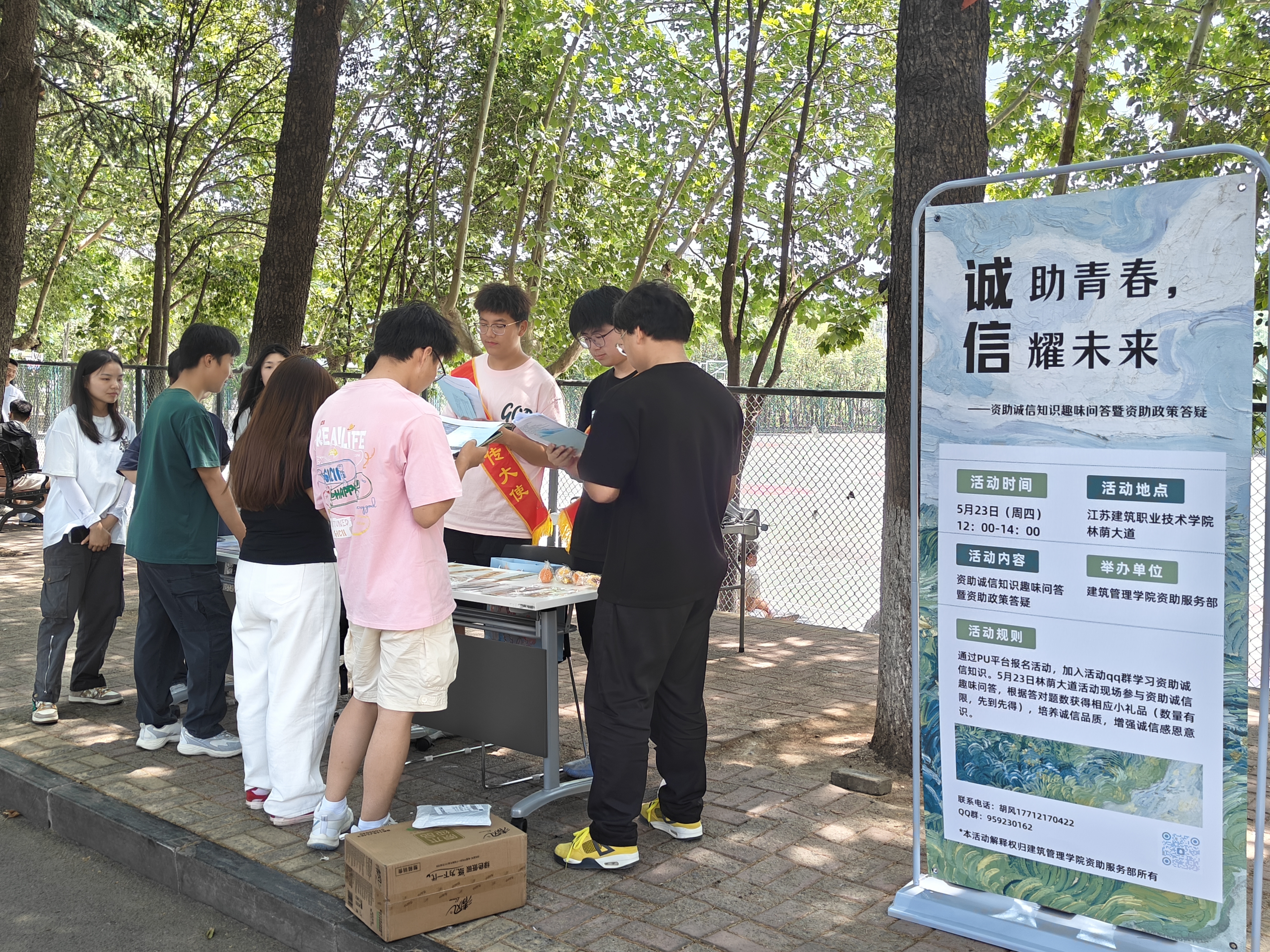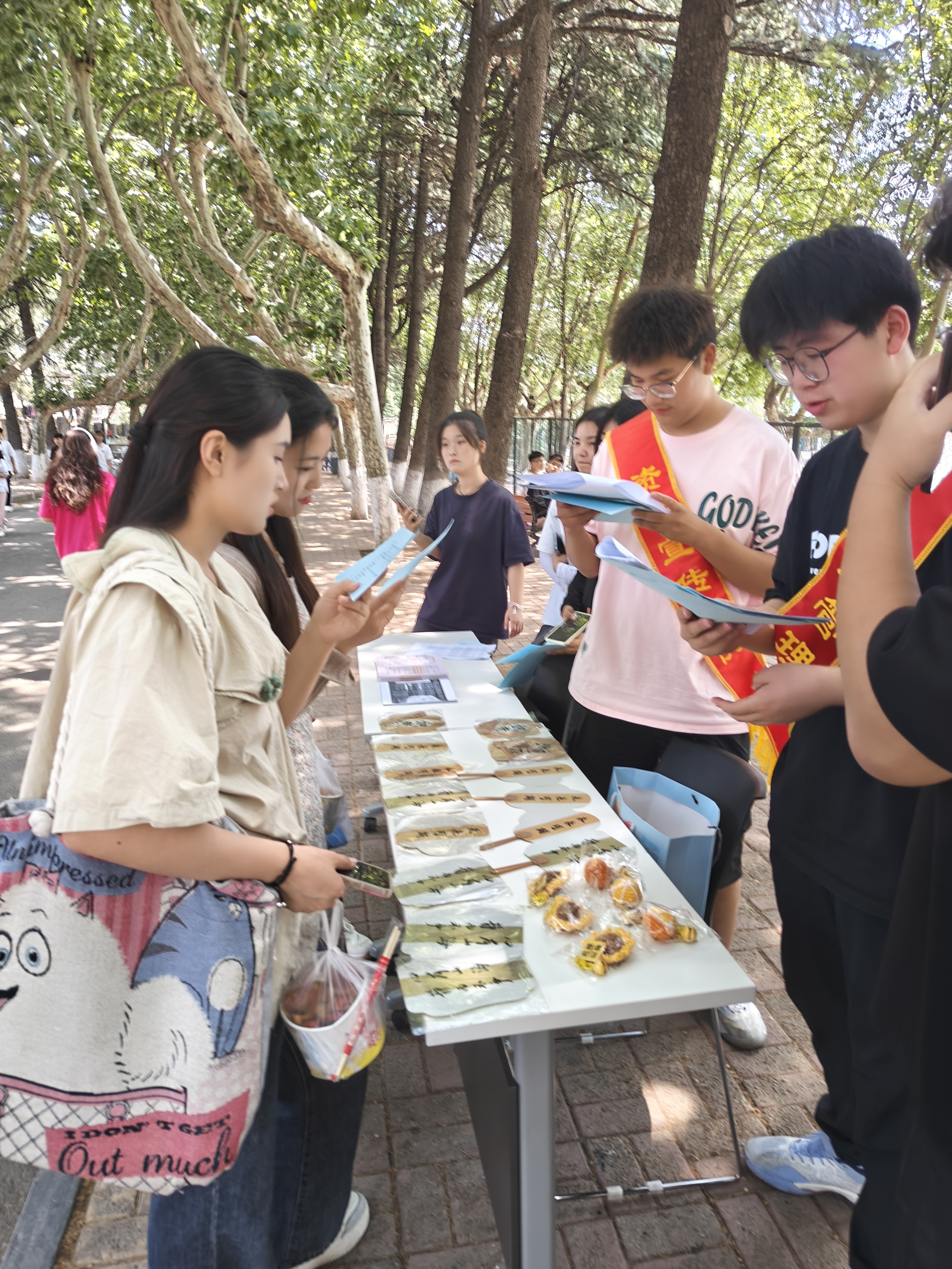 在林荫大道,活动以资助诚信知识趣味问答形式展开。参与员工随机选取题卡进行资助诚信知识问答,根据答题情况获得校园文创小礼物一份,路过员工纷纷驻足观看并参与。在声声欢笑中,同学们进一步掌握了资助诚信知识,意识到诚信履约的重要性和必要性。此外,资助服务部为同学们详细解答了资助工作相关疑问,并发放2024年度资助政策宣传单及生源地贷款毕业确认指南,让同学们对资助诚信相关知识及贷款确认流程有了更清晰的认识。