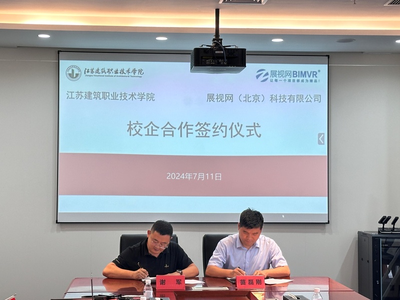 座谈会上,蒋兆峰介绍了公司办学发展、专业改革和人才培养等工作成效,伍岳介绍了展视⽹公司发展历程、取得成效以及未来聚焦方向;之后,双方围绕建筑业数字化转型升级、项⽬管理赛事和校企合作等开展交流研讨,就教学软件及资源捐赠和资统源筹与共享、人才培养与交流、员工创新与创业、文化传承与发展等相关方面校企合作达成共识,并举办签约仪式。此次交流表征着公司与展视网公司合作更进一步,有效助力公司人才培养和高质量发展。