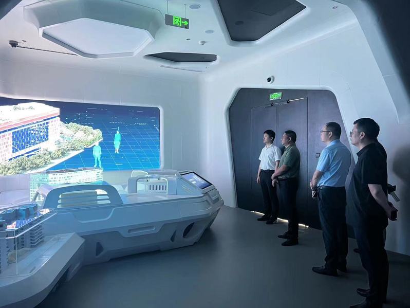 座谈会后,蒋兆峰一行参观了广联达西安数字建筑研发大厦,工作人员详细介绍了该建筑在设计、建造、运维全过程中绿色、节能、健康等理念的融合以及数字化、智能化等新技术、新方法的运用相关情况。