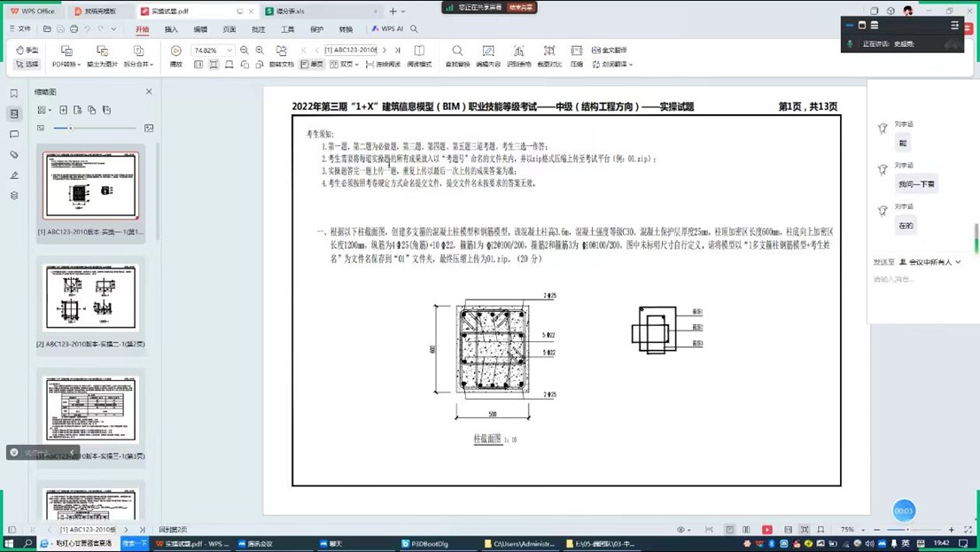 本次培训课程是由社团指导老师史超男老师进行线上教学,教学内容主要是针对1+X中级结构进行了讲解,指导大家在1+X中级结构中的注意事项,包括前期revit建模培训、真题讲解、真题训练、实际操作以及考前指导等。史超男老师鼓励大家争取一次通过考试,力求每一名从BIM等级考试社合格毕业的社员都能够获得相应的证书及实操水平。在指导过程中,同学们提出任何不懂的地方,史超男老师都随时为同学进行答疑。
