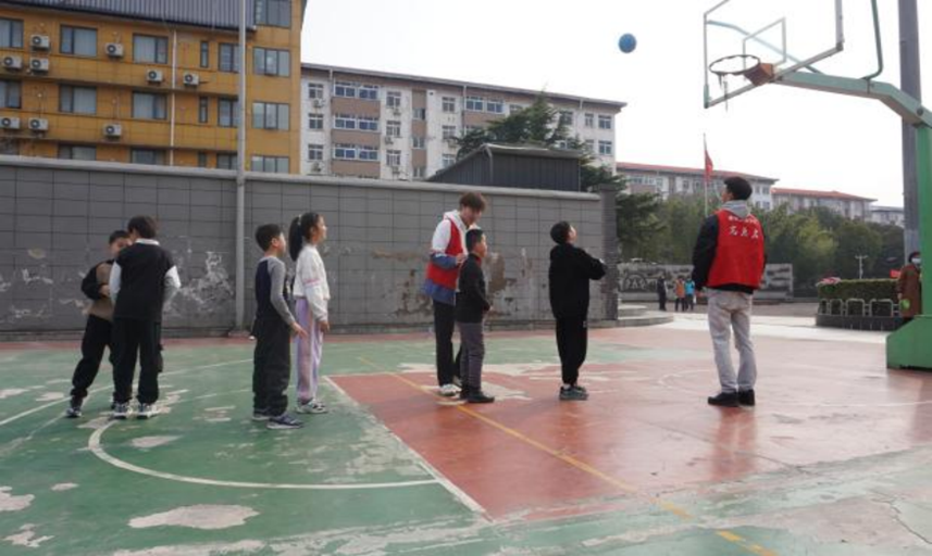 志愿者进行定点投篮示范教学