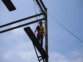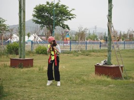 “高空断桥”是在距离地面10米的高空的一座独木桥,而中间是断开的,间距1.2米。要求员工们克服恐惧,跨过断桥。“断桥一小步,人生一大步”,就像我们的生活一样,勇于挑战自己,迈出那关键的一步,便会海阔天空。