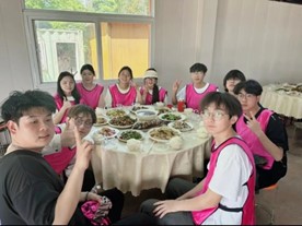 中午时分,同学们来到厨房,以小组为单位动手制作午餐。面对荤素齐全的食材,同学们大胆创造,自由搭配,在清洗、切菜、掌勺等环节各司其职,制作出一桌桌丰盛的菜肴。升腾的烟火气弥漫着团队的气息,辛勤的汗水闪耀着劳动的光辉,这堂特殊的劳动实践课增强了同学们的团结合作意识,深化了同学们对于劳动精神的理解。