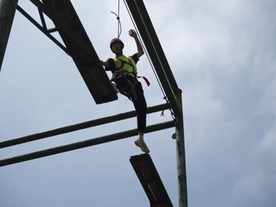“信任背摔”、“挑战150”这两项需要团队之间的相互信任和默契配合。信任是这项运动的基石,在过程中,队员需要克服个人安全带来的恐惧心理,掌握好自己的心态。队员之间不仅要有勇气和信任,还需要一个默契无间的团队协作和坚韧不拔的心态。