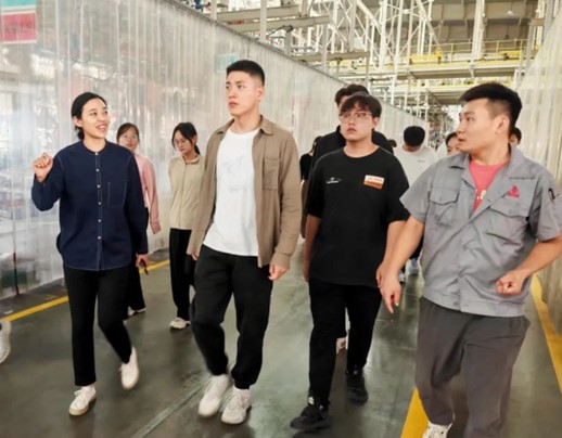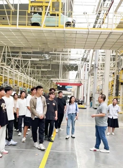 同学们参观了新能源汽车的生产车间,直观了解到汽车制造四大工艺:冲压-焊接-涂装-总装的全流程,见证了一辆汽车的“新鲜出炉”。