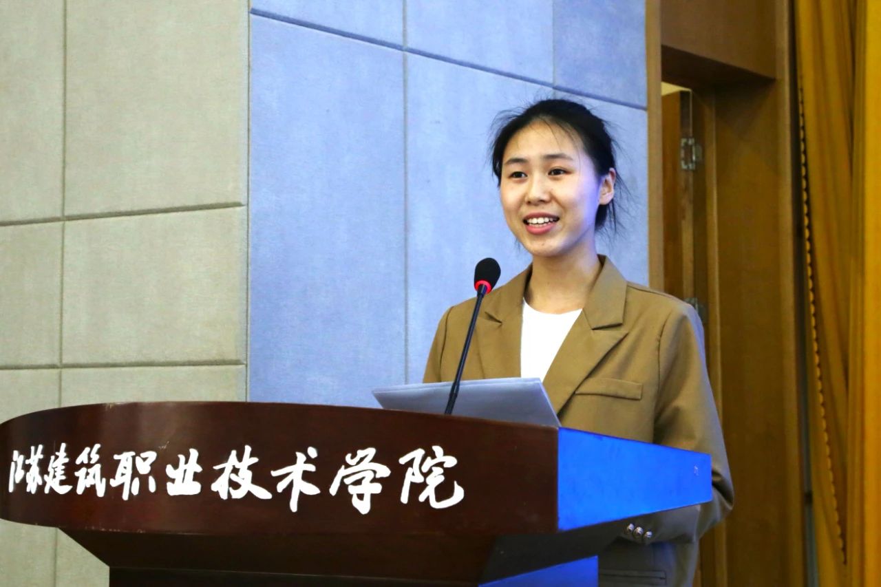 教师代表张兰兰发言。她表示,公司正在不断引导教师树立“育人为本、德育为先”的思想理念,不断加强师德师风建设和教风学风建设,倡导教学相长,不断提升职业教育水平和人才培养质量,这要求教师加强自身素质,加强同事之间的交流学习。希望同学们相信老师、相信自己、相信比赛,不负青春,用努力在自己的青春年华中留下美丽的印记。