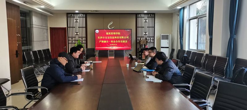 3月17日下午,长沙计支宝信息科技有限公司计支宝研究院常务副经理兼教育事业部总经理成超一行来公司开展产教融合、校企合作交流。苗磊刚经理、郭红军副经理、工程造价教研室教师代表参加了交流活动。