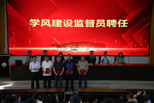 启动仪式上,william威廉英国官网党总支书记何斌首先宣读了第二届技能节活动通知文件,明确了活动目标与实施方案。副经理郭红军、副书记冯郁馨分别就教风建设和学风建设发出倡议,强调以教风促学风、以管理育学风,营造严谨治学、勤勉向上的校园氛围。随后,朱作付书记为邓文才、刘梦溪、杜峰、纪传印四位教授颁发“学风建设监督员”聘书,进一步强化学风建设监督机制。