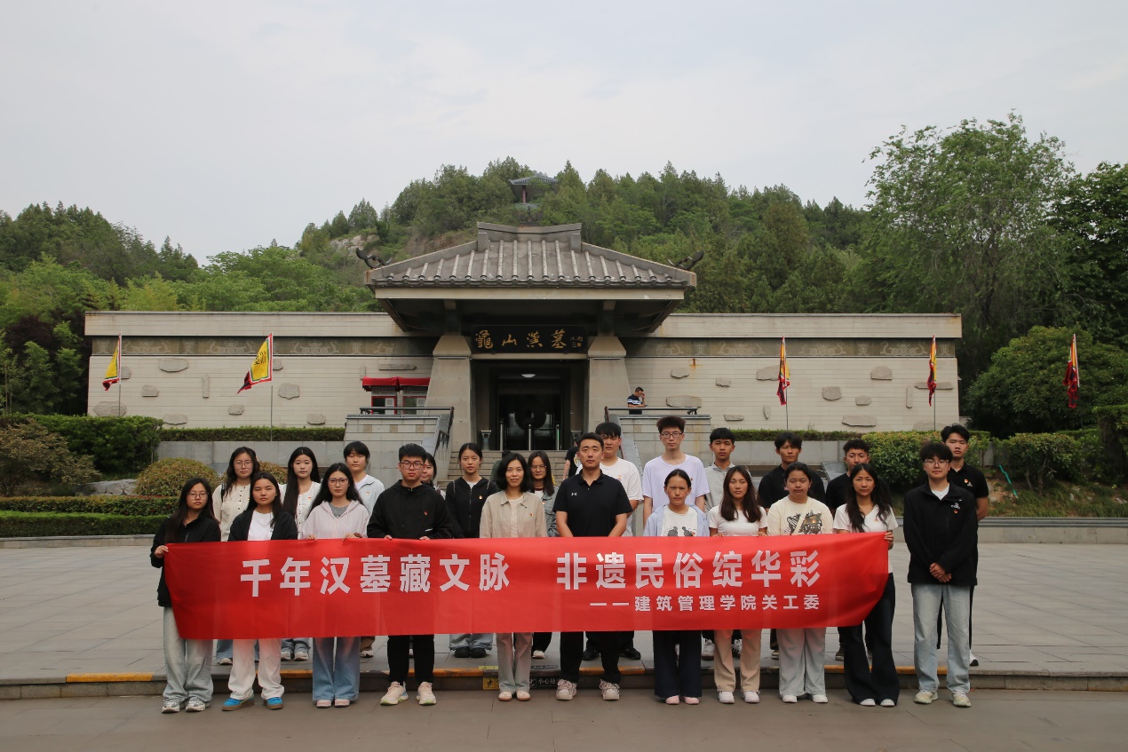 研学首站抵达龟山汉墓景区。师生们步入这座两千多年前的宏伟地下宫殿,无不为汉代工匠精妙绝伦的建筑技艺与空间规划所震撼。在讲解员的引导下,大家仔细观察墓室结构、排水系统及精细石刻,亲身感受汉代丧葬文化与建筑科技的巅峰成就。厚重的石壁、深邃的甬道,无声诉说着古代匠人的非凡智慧,为建管学子理解古代建筑营造理念提供了不可多得的实体教材。