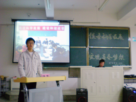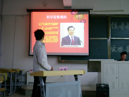4月23日下午,我系团总支“领悟科学发展、实现青春梦想”的PPT展示大赛在D-203举行,十一个代表队参加了比赛,将学习实践科学发展观活动不断推向热潮。系党总支副书记张文远、各系团总支副书记也应邀出席本次赛。
